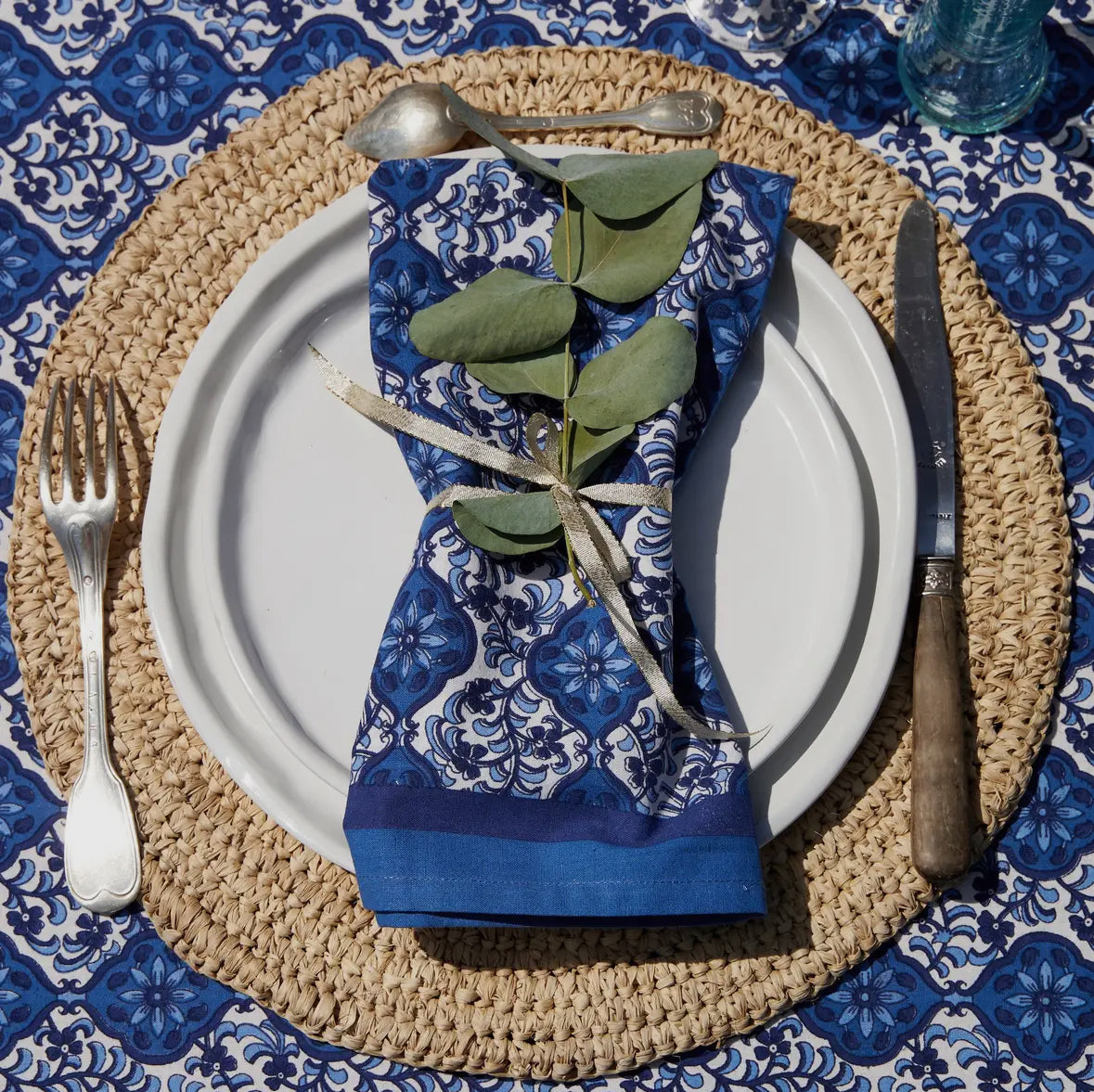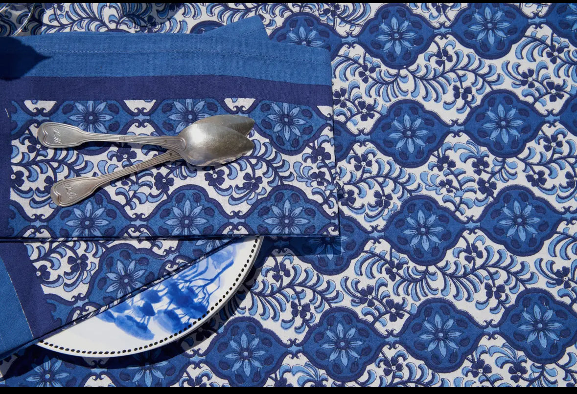 Everyday can feel like alfresco dining on the lake when you set the table with our "Blue" Collection. Delicate botanical and floral motifs adorn each tablecloth. Each high quality linen is hand printed by skilled artisans using a time honored technique resulting in a singular piece of craftsmanship.